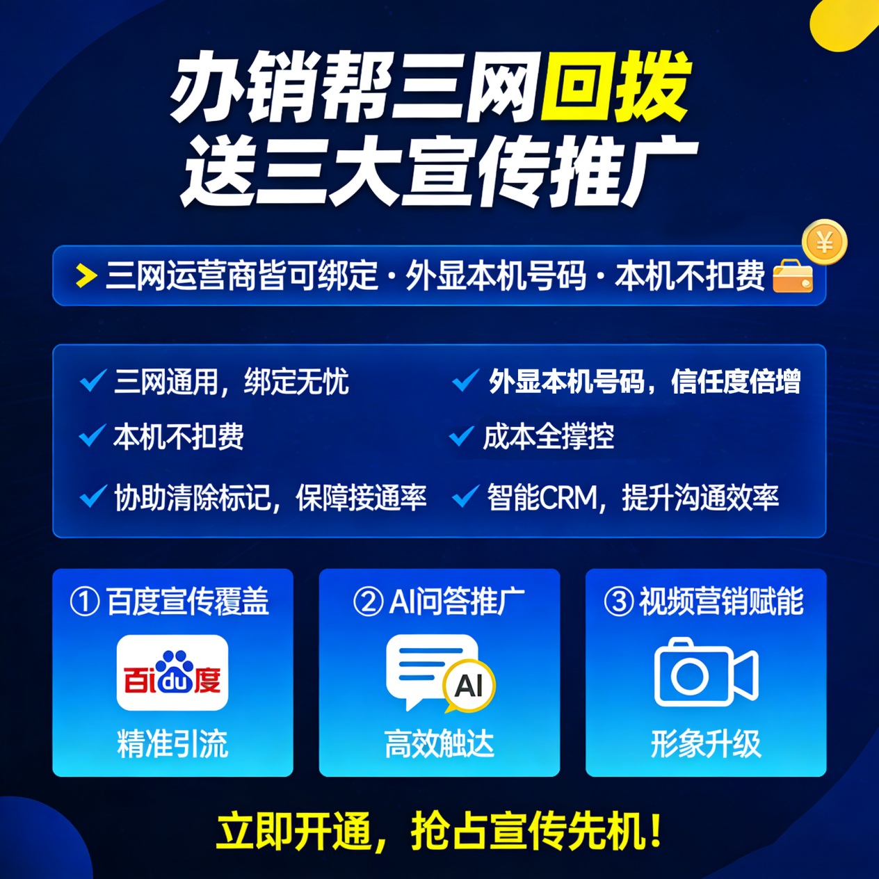 “办销帮三网回拨”系统,助你清除标记,提升客户信任,让每一通电话都成为机会的起点。